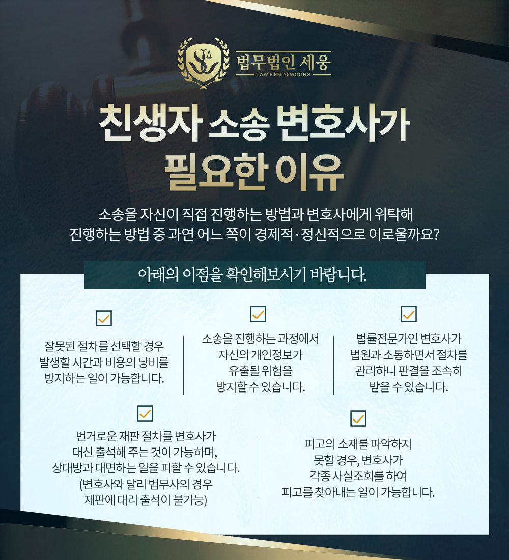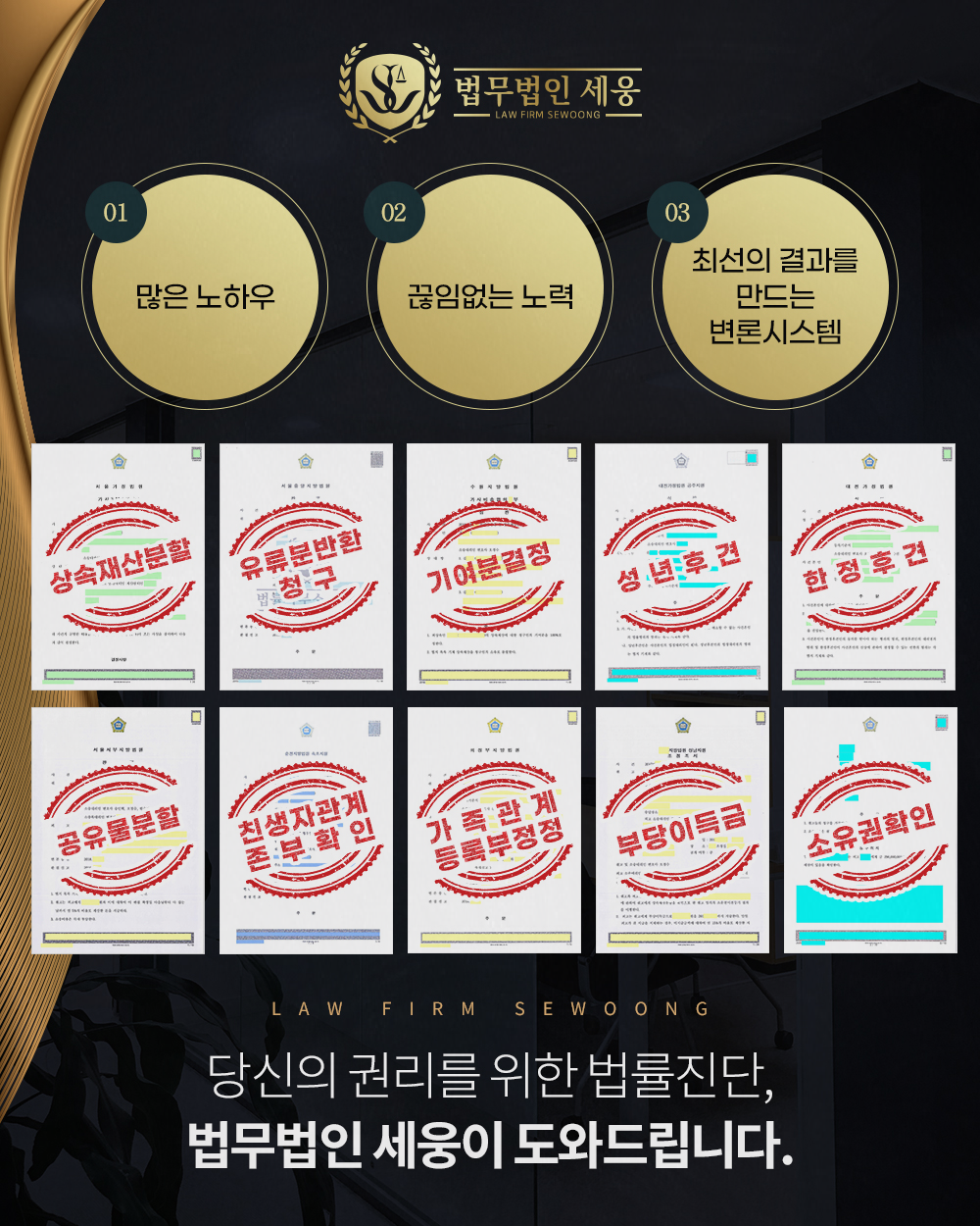 자필유언장의 효력에 따라 상속인들의 상속분에는 엄청난 변화가 일어날 수 있습니다. 이에 대해서 이의를 제기하거나 이의제기를 방어하고자 하신다면 우선 법률전문가와 대응방법을 고심해보시기 바랍니다. 상속분야에 대한 전문성으로 무장한 법무법인 세웅이 다양한 난관을 어렵지 않게 해결해드리겠습니다.